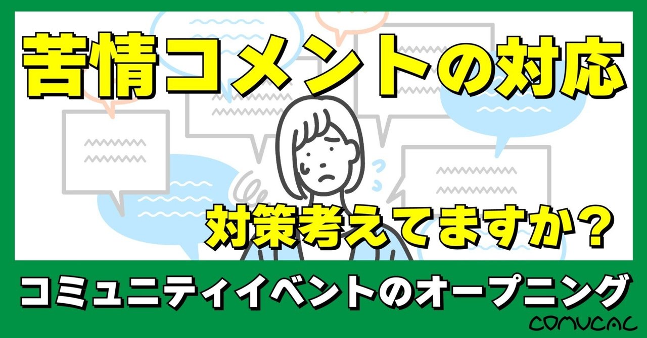 コミュニティイベントのオープニングでもし苦情コメントが出てしまったら?|株式会社コミュカル 【これはどんなnote?】 様々な企業のコミュニティ推進をサポートしているコミュニティプロフェッショナルが、「イベントのオープニングトーク」に関する苦情を防ぐための...