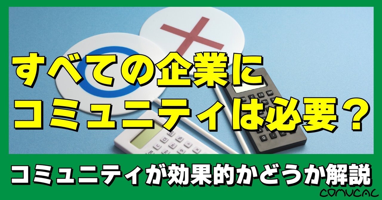 すべての企業にコミュニティは必要なのか?|株式会社コミュカル 【これはどんなnote?】 企業がコミュニティ施策を検討する際に、「本当にうちの会社に必要なのか?」と悩むことは多いもの。 今回は、コミュニティが 施策として効果的な...