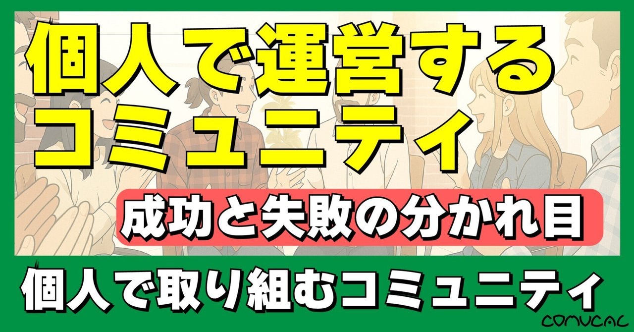 趣味で運営する個人コミュニティ|成功と失敗の分かれ目|株式会社コミュカル 【これはどんなnote?】 企業のビジネス目的ではなく、個人が趣味や関心をきっかけに立ち上げる個人主導のコミュニティをテーマに、「上手くいくパターン」「上手くいかな...