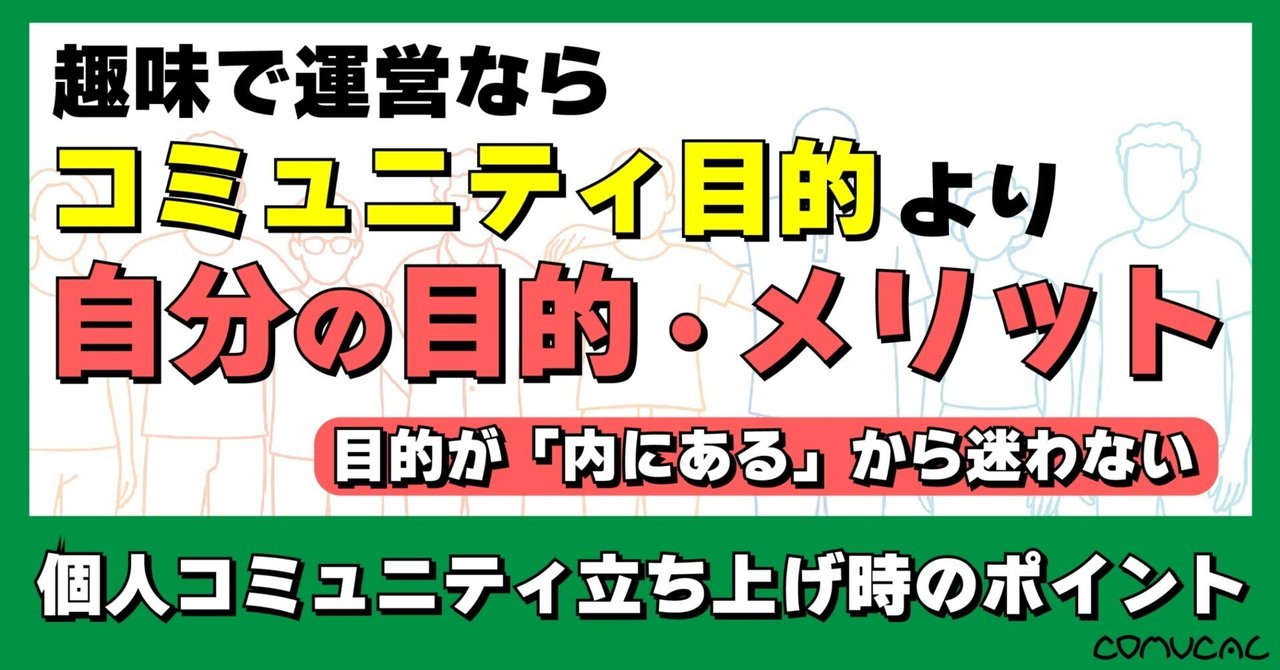 趣味で運営するコミュニティは“コミュニティの目的”の前に“自分の目的とメリット”を!|株式会社コミュカル 【これはどんなnote?】 企業としての取り組みではなく個人活動として立ち上げる「ゆるい属性コミュニティ」──たとえば「○○年生まれの会」「○○県民の集い」「マーケターコ...
