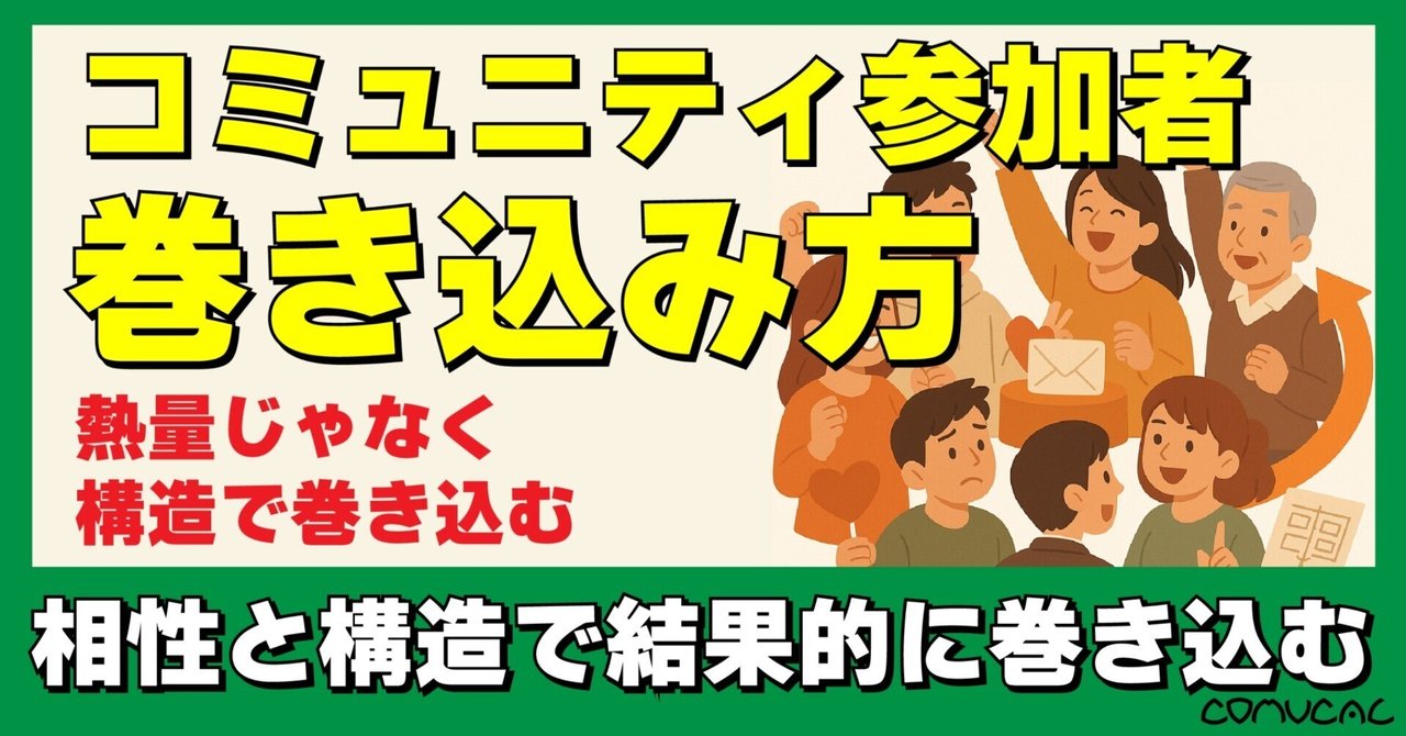 コミュニティ「参加者の巻き込み方」|“構造”で自然と巻き込まれる場をつくる方法|株式会社コミュカル