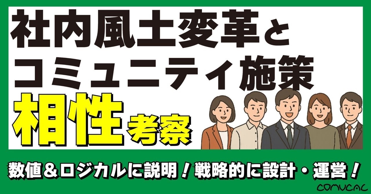 社内風土変革とコミュニティの相性|株式会社コミュカル 【これはどんなnote?】 「社内の組織風土を変えたいけど、コミュニティの役割や位置づけが説明しづらい」 「コミュニティは万能の解決策ではないのでは?という意見に対す...