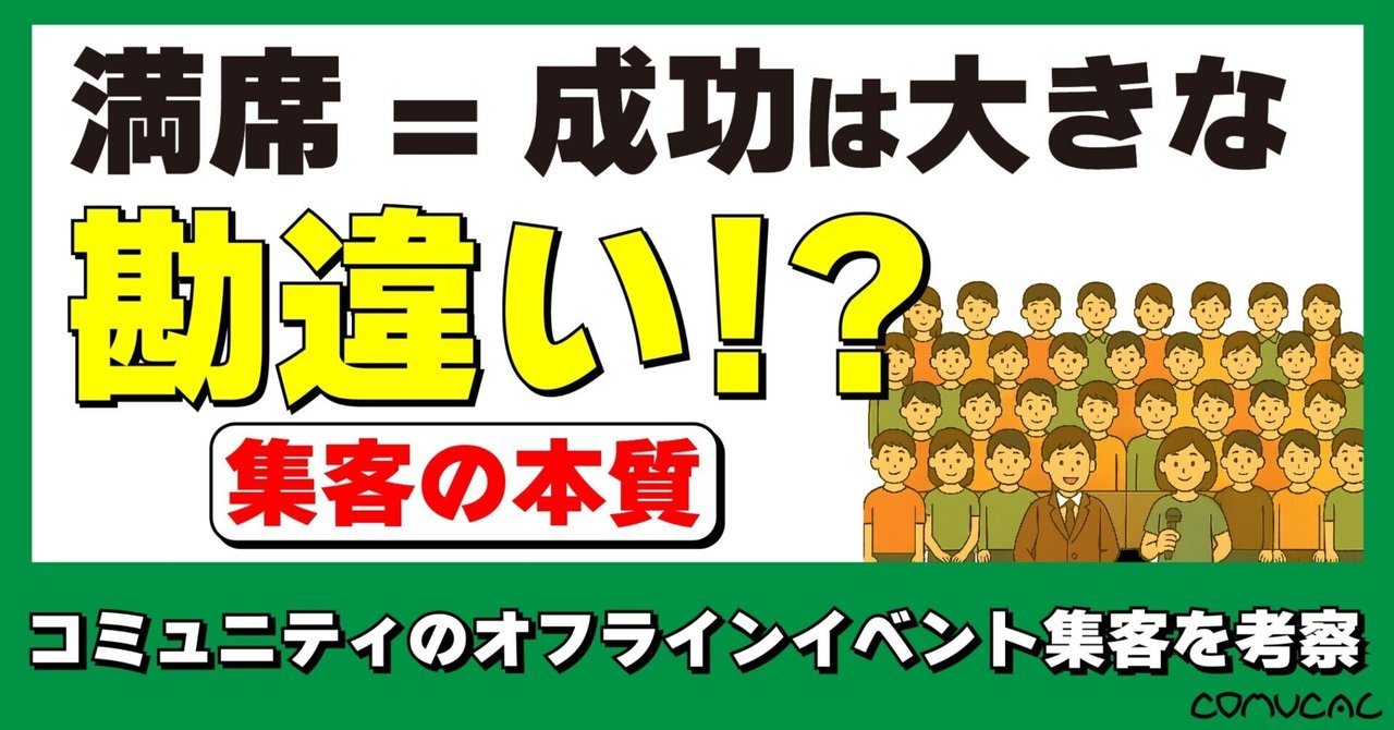 「満席=成功」は大きな勘違い?コミュニティオフラインイベント集客の本質|株式会社コミュカル 【これはどんなnote?】 「イベントが満席になった!」「告知したら人が集まった!」 そんなときに感じる達成感、ありますよね。 でも本当にそれで“成功”と言えるのでしょ...